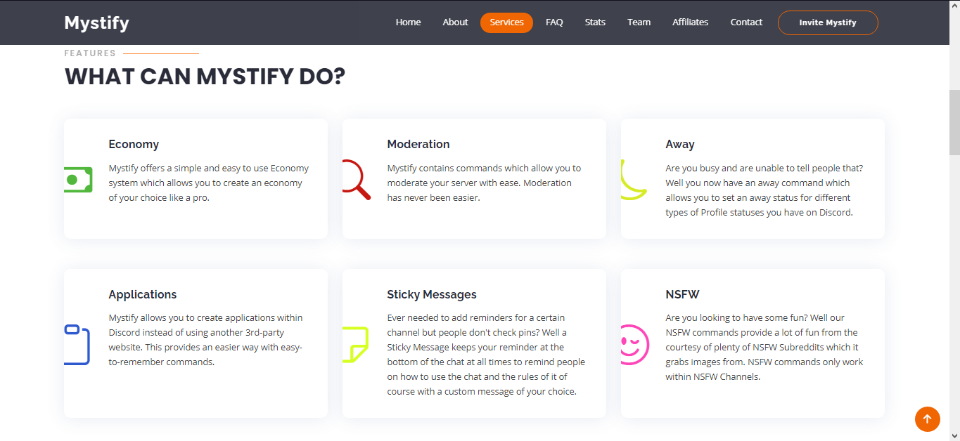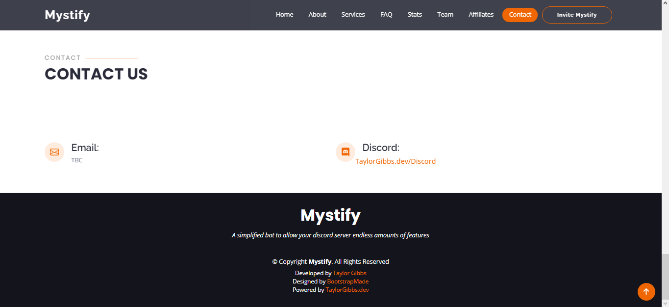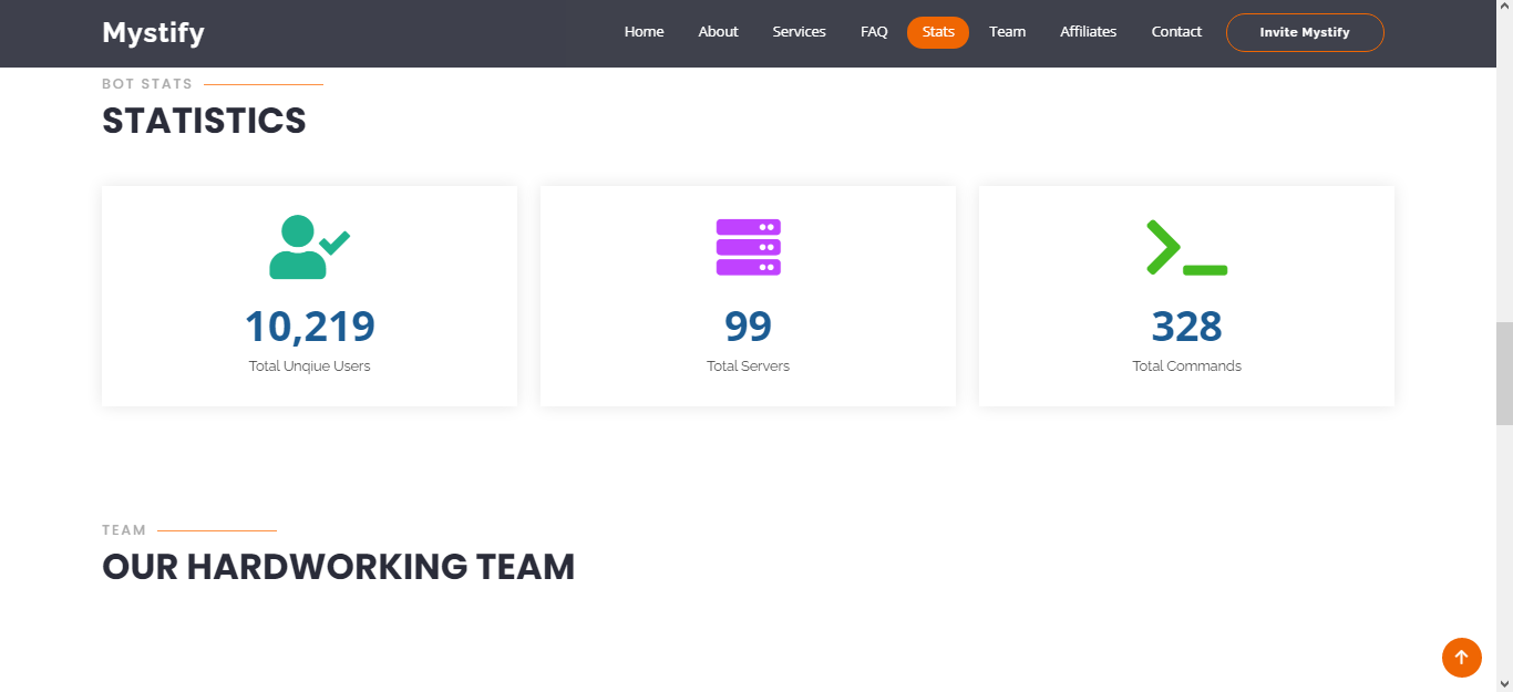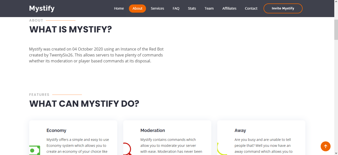 This website was created to represent the Mystify Discord Bot. This website is a responsive website and it has animations to impress!